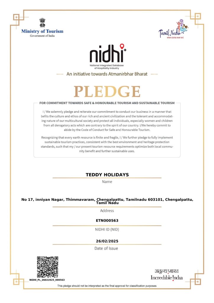 Ministry of Tourism - Govt of India - Nidhi Certificate